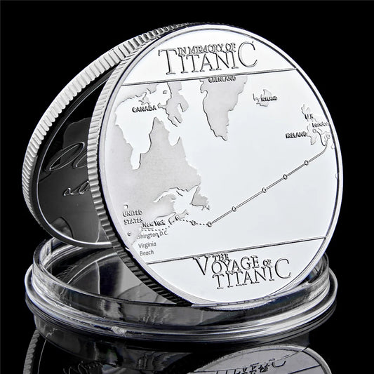 1912 The Titanic Ship and Travel Map Silver Commemorative Coin