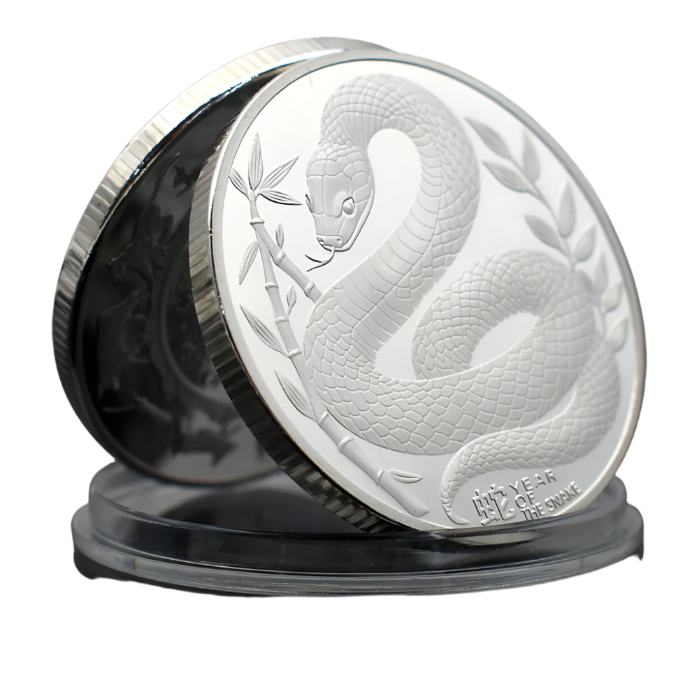 Celebrate the Lunar New Year with the 2025 King Charles III Australia Year of The Snake Gold and Silver Coins, meticulously crafted by The Perth Mint. These coins feature a design of a snake curled among bamboo stems, accompanied by the Chinese character for 'snake' and the inscription 'SNAKE 2025'. The obverse showcases the effigy of His Majesty King Charles III, designed by Dan Thorne, marking a departure from previous coins featuring Queen Elizabeth II.